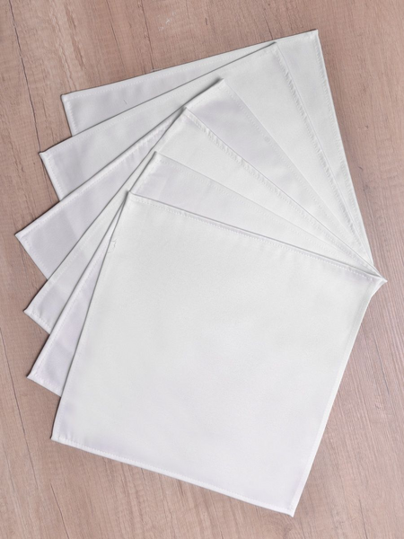 Классические однотонные салфетки на стол. Без рисунка. Размер - 31 х 31 см, набор 6 штук. Состав ткани - хлопок 20%, полиэфир 80%.
