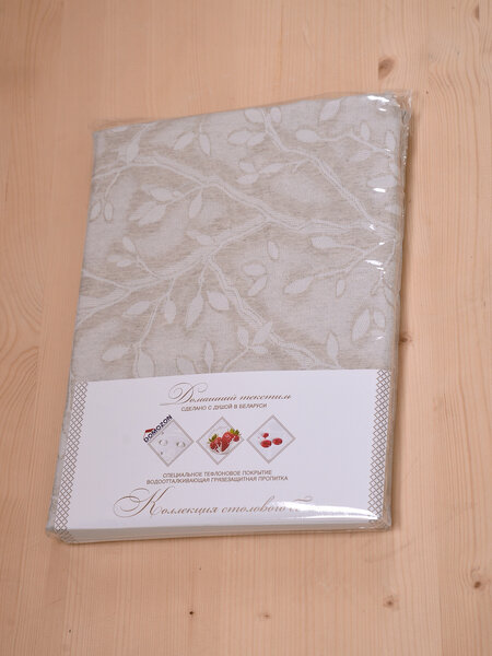 Льняная скатерть на кухню с ненавязчивым рисунком имеет грязеотталкивающую и водоотталкивающую отделку, которая придает ткани практичность и высокие эксплуатационные свойства. Отделка не имеет цвета и запаха, неопределима на ощупь. И главное - любую нечаянно пролитую жидкость можно просто аккуратно впитать губкой или салфеткой. Для восстановления защитных свойств ткани изделие необходимо подвергнуть глажению. Белорусский производитель DOMOZON - отличный подарок или презент маме, бабушке, подруге, сестре, свекрови, коллеге, крестной маме!