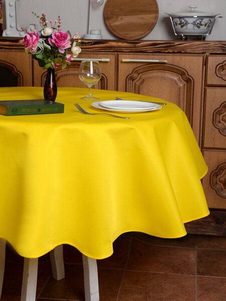 Скатерть на кухонный стол тканевая прямоугольная водоотталкивающая - размер 110 х 145 см, состав - 20 % хлопок, 80 % полиэфир. Плотность ткани - 190 г/ м2.