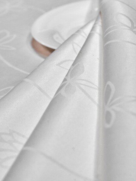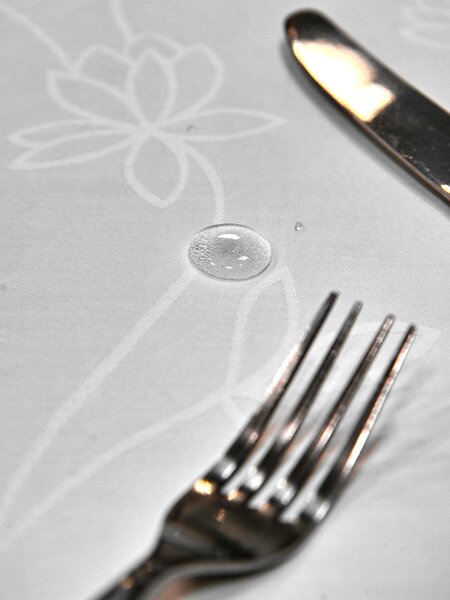 Скатерть однотонная на кухню с ненавязчивым рисунком имеет грязеотталкивающую и водоотталкивающую отделку, которая придает ткани практичность и высокие эксплуатационные свойства. Отделка не имеет цвета и запаха, неопределима на ощупь. И главное - любую нечаянно пролитую жидкость можно просто аккуратно впитать губкой или салфеткой. Для восстановления защитных свойств ткани изделие необходимо подвергнуть глажению.