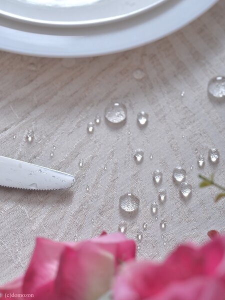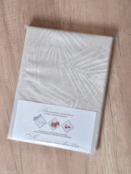 Льняная скатерть на кухню с ненавязчивым рисунком имеет грязеотталкивающую и водоотталкивающую отделку, которая придает ткани практичность и высокие эксплуатационные свойства. Отделка не имеет цвета и запаха, неопределима на ощупь. И главное - любую нечаянно пролитую жидкость можно просто аккуратно впитать губкой или салфеткой. Для восстановления защитных свойств ткани изделие необходимо подвергнуть глажению. Белорусский производитель DOMOZON - отличный подарок или презент маме, бабушке, подруге, сестре, свекрови, коллеге, крестной маме!