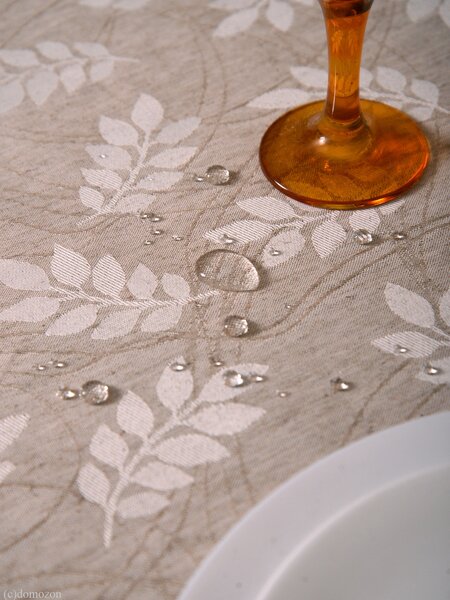 Льняная скатерть на кухню с ненавязчивым рисунком имеет грязеотталкивающую и водоотталкивающую отделку, которая придает ткани практичность и высокие эксплуатационные свойства. Отделка не имеет цвета и запаха, неопределима на ощупь. И главное - любую нечаянно пролитую жидкость можно просто аккуратно впитать губкой или салфеткой. Для восстановления защитных свойств ткани изделие необходимо подвергнуть глажению. Белорусский производитель DOMOZON - отличный подарок или презент маме, бабушке, подруге, сестре, свекрови, коллеге, крестной маме!