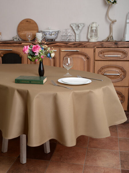 Скатерть однотонная на кухню без рисунка имеет грязеотталкивающую и водоотталкивающую отделку, которая придает ткани практичность и высокие эксплуатационные свойства. Отделка не имеет цвета и запаха, неопределима на ощупь. И главное - любую нечаянно пролитую жидкость можно просто аккуратно впитать губкой или салфеткой. Для восстановления защитных свойств ткани изделие необходимо подвергнуть глажению. Белорусский производитель DOMOZON - отличный подарок или презент маме, бабушке, подруге, сестре, свекрови, коллеге, крестной маме!