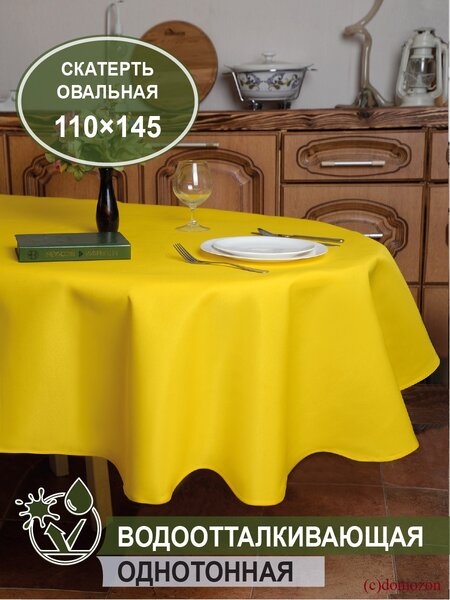 Скатерть на кухонный стол тканевая овальная водоотталкивающая - размер 110 х 145 см, состав - 20 % хлопок, 80 % полиэфир. Плотность ткани - 190 г/ м2.