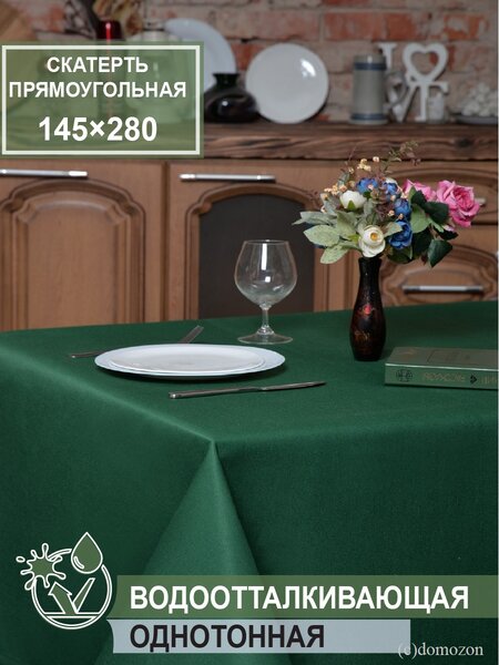 Скатерть на кухонный стол тканевая прямоугольная водоотталкивающая - размер 145 х 280 см, состав - 20 % хлопок, 80 % полиэфир. Скатерть водоотталкивающая с плотностью ткани - 190 г/ м2.